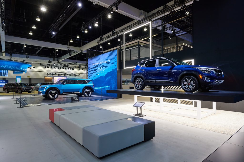 For those who haven’t met or worked with Chris, he led the design of Kia’s new, award-winning auto show experience. Back in 2021, Kia launched a new, reimagined global brand identity. To reinforce the brand’s move upstream in the auto market, Kia needed a new auto show exhibit that exuded the brand’s new purpose: “Movement that inspires.” The design was launched at the 2021 Los Angeles International Auto Show and won a Gold Exhibit Design Award.