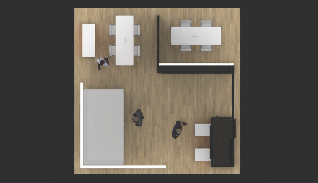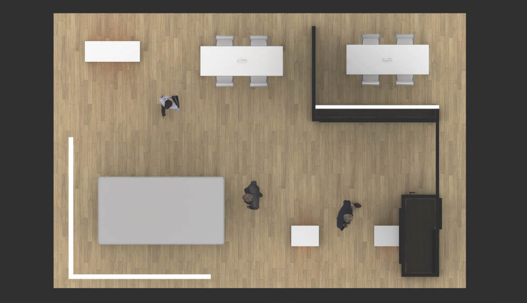Many companies exhibit at a range of industry tradeshows, and not all footprints or show spaces are the same. For example, what do you do when your footprint goes from a square at one show to a rectangle at another (such as in the pics above)? In these cases, we often work to create a modular “kit” of parts for varying floor footprints or settings. A custom display can allow for more flexibility, efficiency and (ultimately) savings when the need arises to be able to reconfigure a display into different shapes and/or sizes.