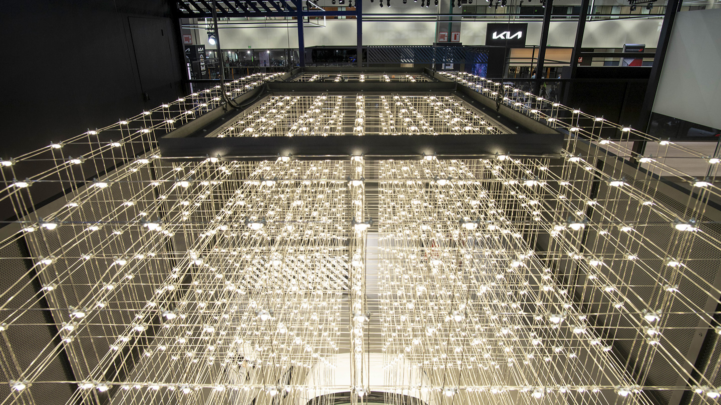 Kia’s EV9 concept debuted atop a custom-build and programmed LED installation.