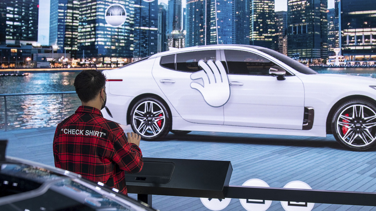 A custom interactive display let guests explore color and trim options of Kia vehicles without having to touch anything.