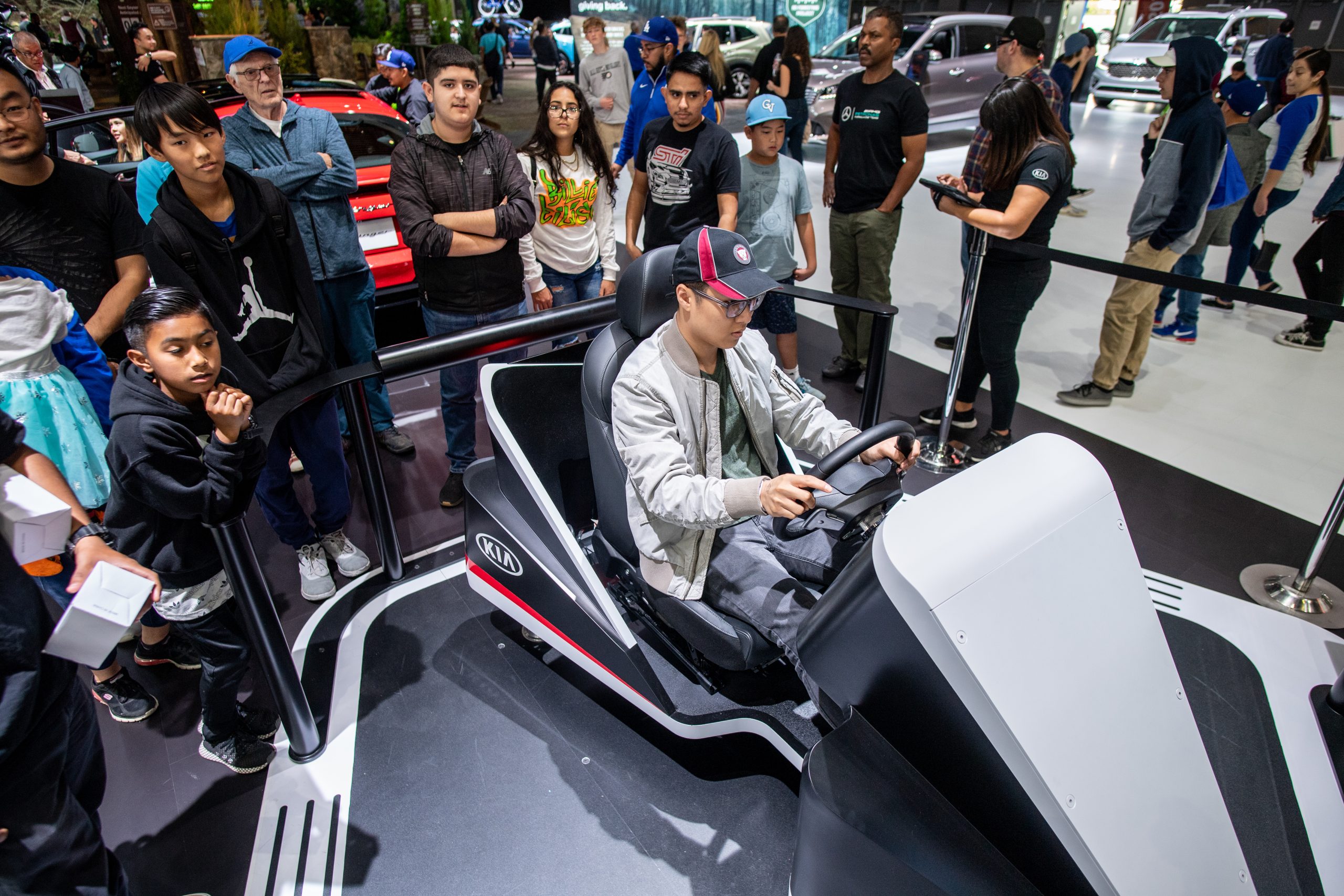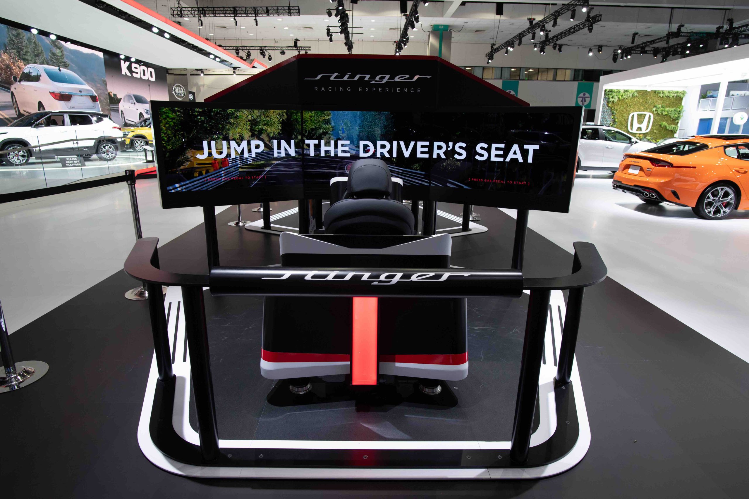 One simulator let show goers take Kia’s Stinger for a spin around the Nürburgring — a famous race track in Germany where sports cars prove their mettle.