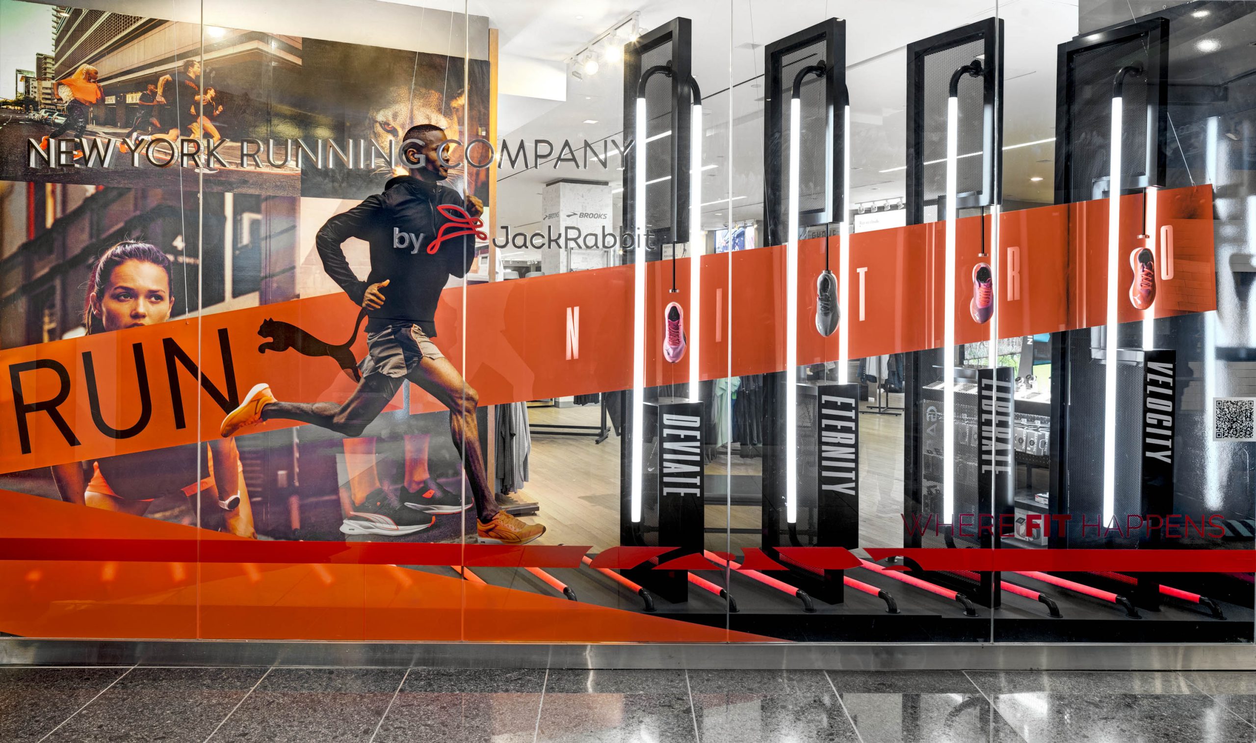 As part of the PUMA NITRO launch, EWI also installed a series of innovative shoe window displays in other NYC running stores.